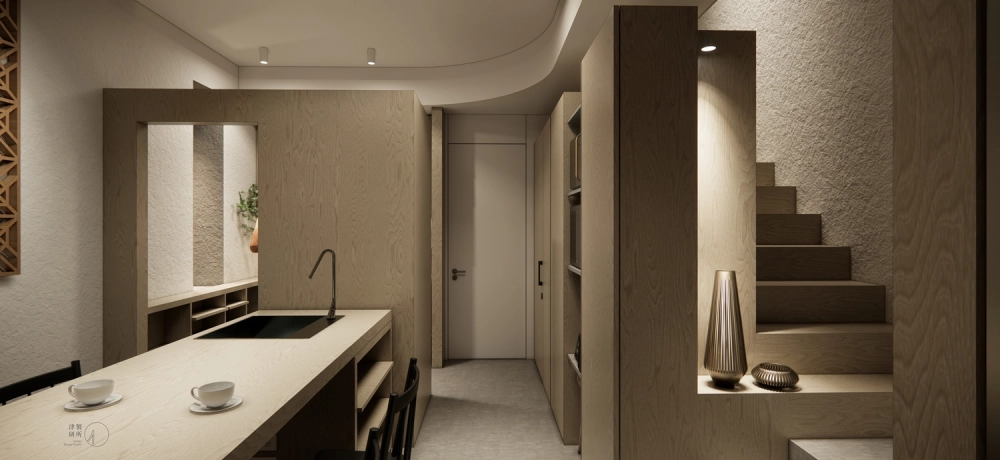 本案運用形體的對比與空間感的流暢,結合材料獨特感,呈現一個兼具品味與實用性的現代居所。